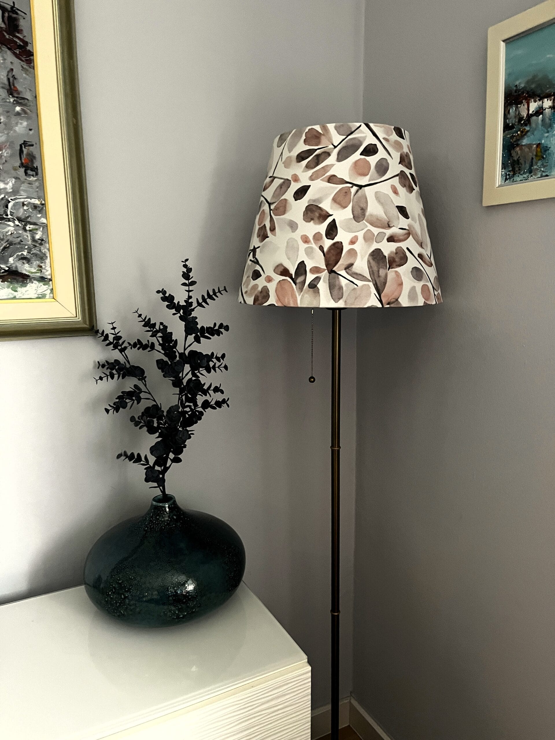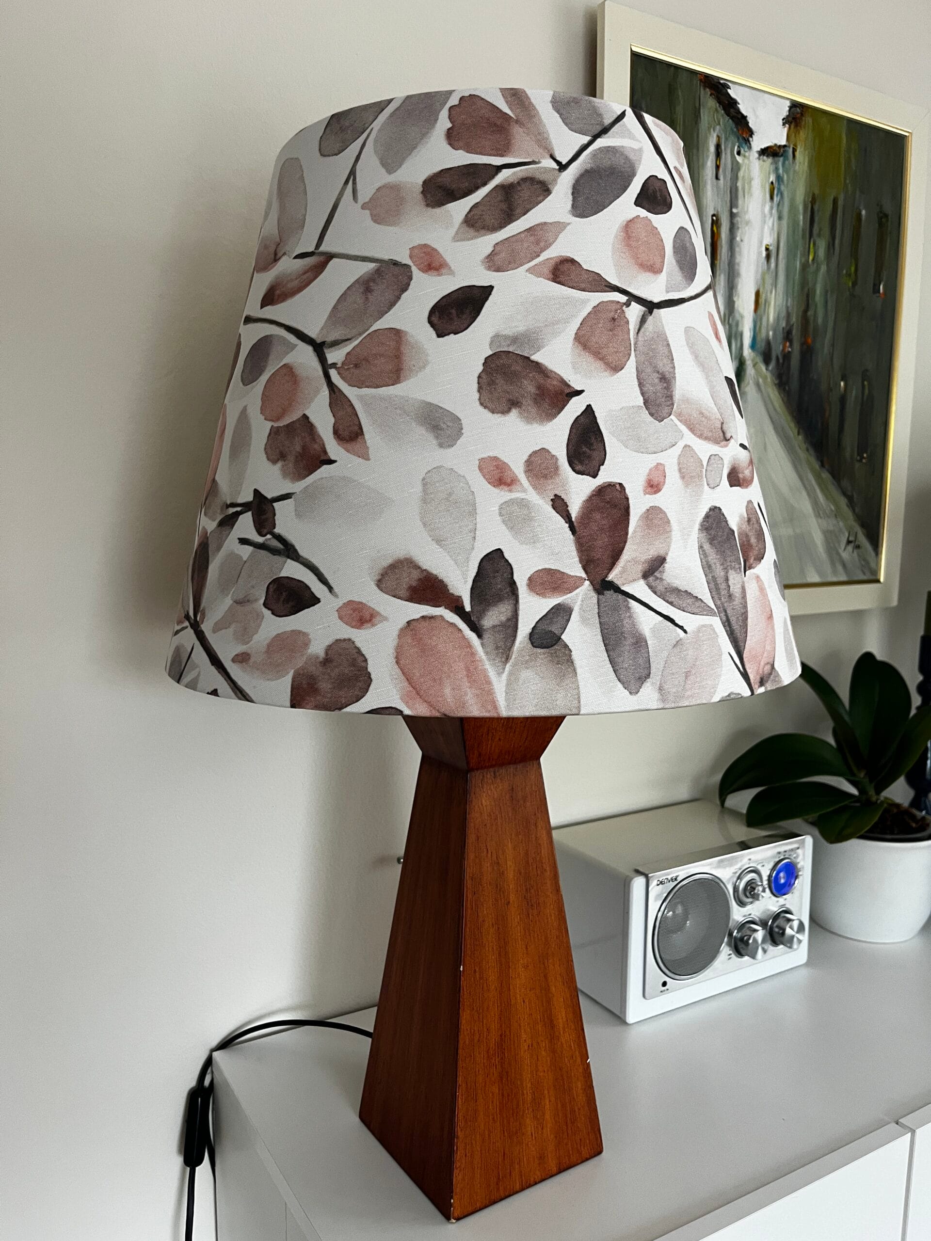 • Sva naša sjenila izrađena su od visokokvalitetnih materijala, najčešće u kombinaciji lana i pamuka, koji pružaju prirodan izgled i odličan su izbor za dizajnerska sjenila, jer spajaju estetiku, funkcionalnost i održivost. Tkanina je tkana u 2×1 Oxford vezu što joj daje teksturu. Upravo zbog tog načina tkanja, sjenilo ima karakter koji se lijepo ističe kada je svjetlo upaljeno.Tisak na tkanini izrađuje se digitalno u SAD-u s ekološki prihvatljivim bojama na bazi vode. Ova tehnika omogućuje izuzetnu preciznost i postojanost, a uz to rezultira lijepim, intenzivnim bojama koje oživljavaju svaki uzorak i daju sjenilu poseban vizualni dojam