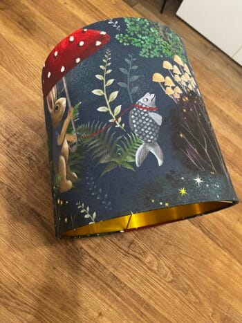Ovo bajkovito LamPharia sjenilo s motivom zečića s kišobranom od crvene gljive podsjeća na stranicu iz dječje slikovnice. Premda inspirirano djetinjom maštom, savršeno se uklapa u svijet odraslih koji u srcu još uvijek čuvaju ono nešto zaigrano i nisu odustali od djeteta u sebi.