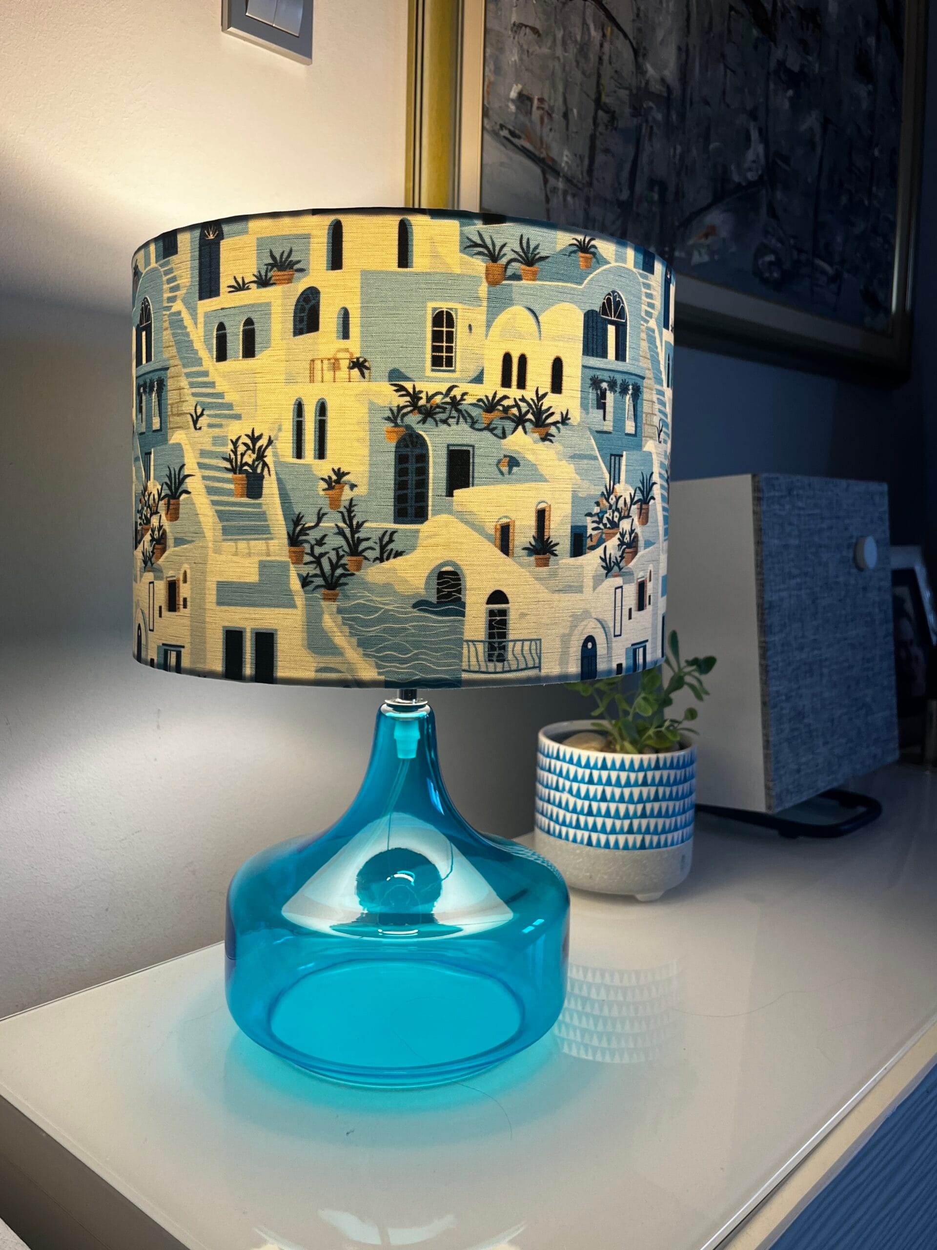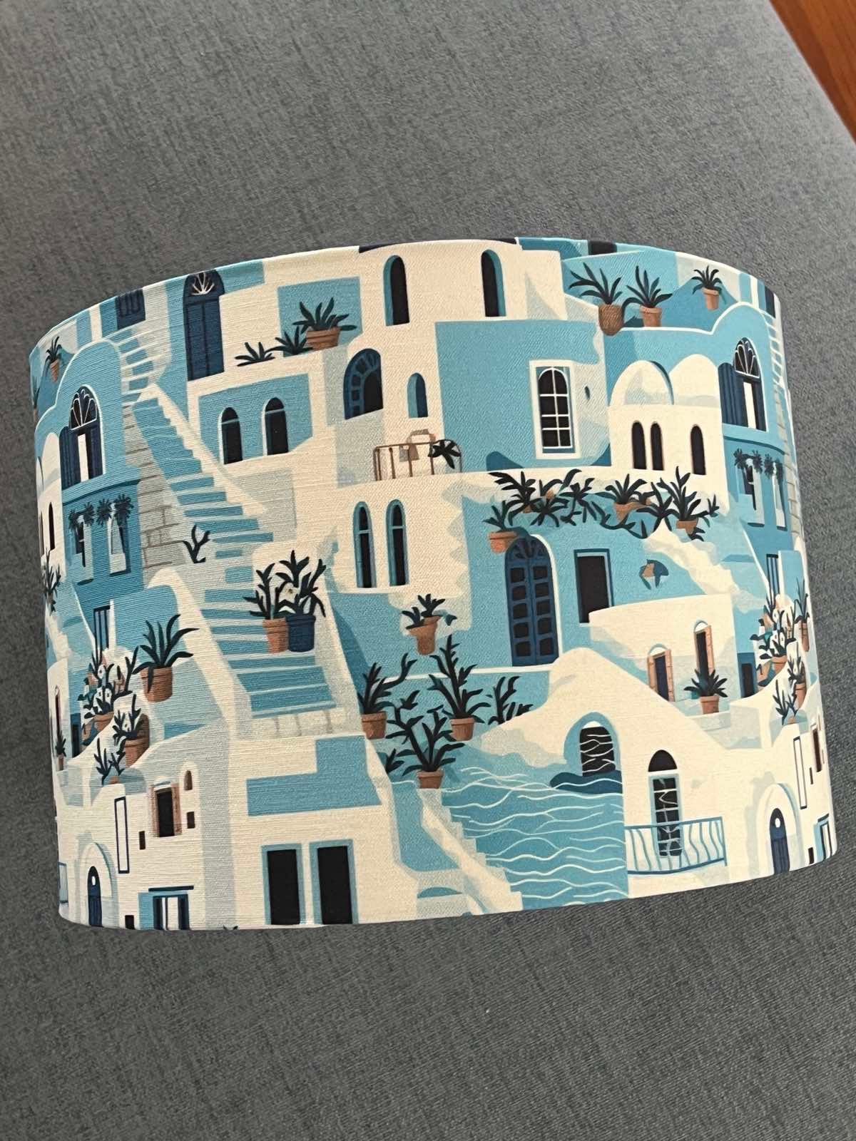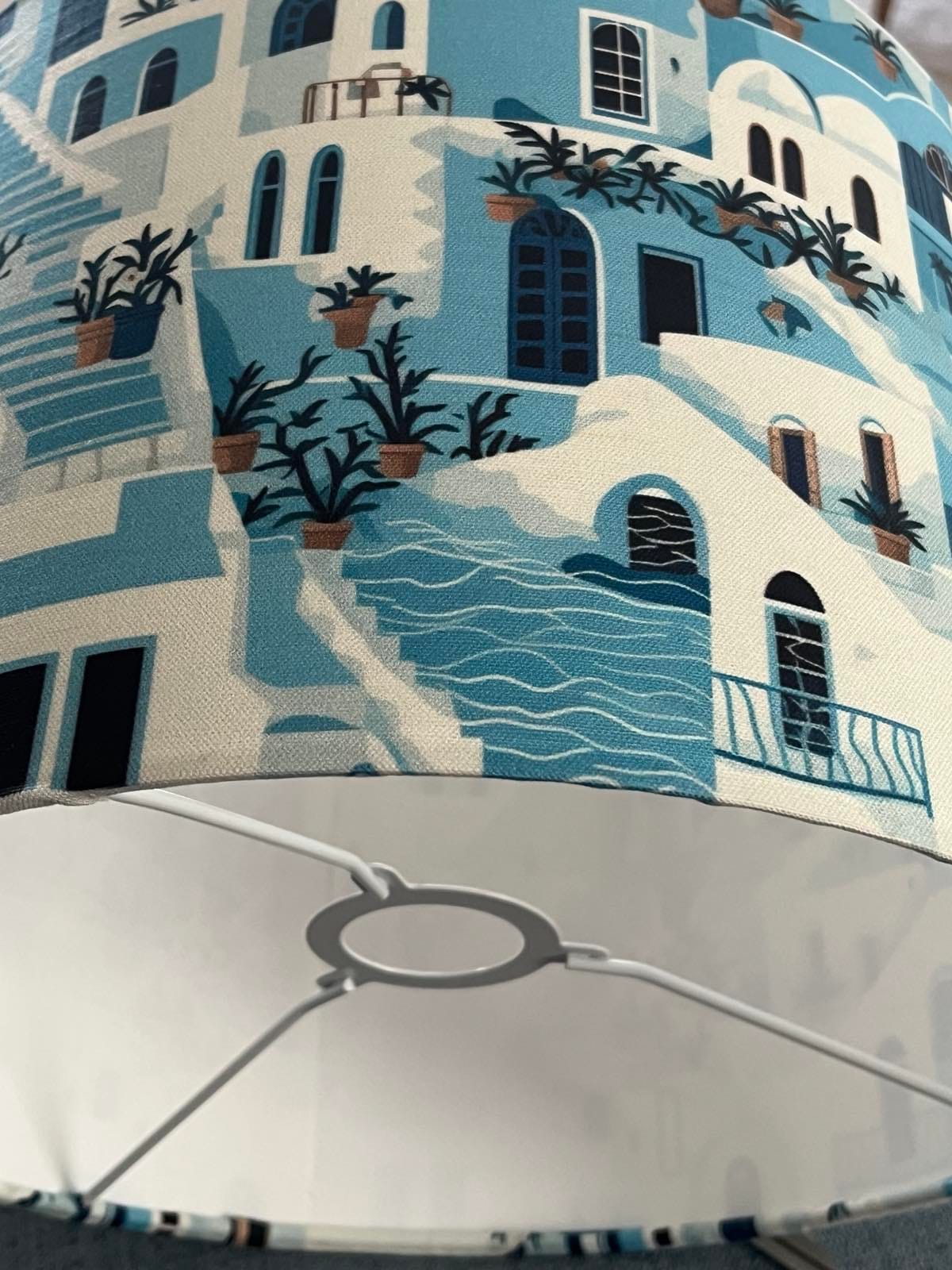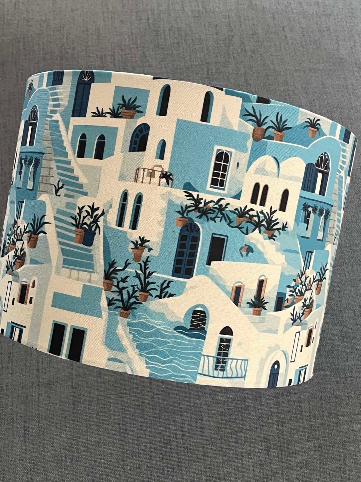 Santorini LamPharia sjenilo inspirirano bajkovitim plavo-bijelim kućicama Santorinija odiše ritmom bezbrižnih ljetnih dana i donosi topli duh grčkih otoka i mediterana.