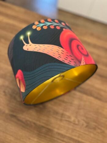 - Sva naša sjenila izrađena su od visokokvalitetnih materijala, najčešće u kombinaciji lana i pamuka, koji pružaju prirodan izgled i odličan su izbor za dizajnerska sjenila, jer spajaju estetiku, funkcionalnost i održivost. Tkanina je tkana u 2×1 Oxford vezu što joj daje teksturu. Upravo zbog tog načina tkanja, sjenilo ima karakter koji se lijepo ističe kada je svjetlo upaljeno.Tisak na tkanini izrađuje se digitalno u SAD-u s ekološki prihvatljivim bojama na bazi vode. Ova tehnika omogućuje izuzetnu preciznost i postojanost, a uz to rezultira lijepim, intenzivnim bojama koje oživljavaju svaki uzorak i daju sjenilu poseban vizualni dojam